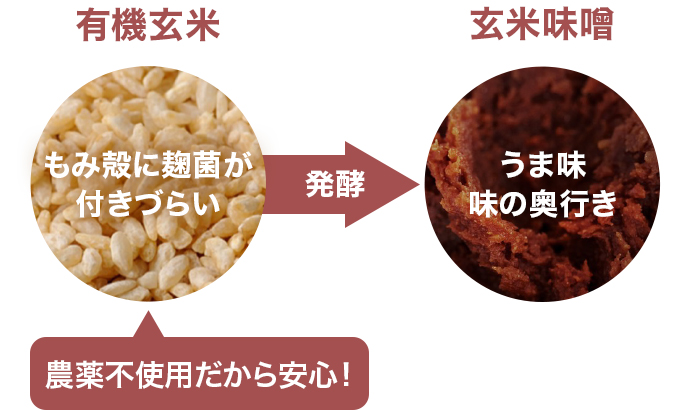 有機玄米のコクうま味噌。生きた麹の豊かな香り。