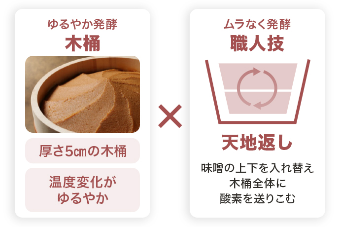 作り手の手間と愛情の詰まった味噌を、生きたそのままの状態で木桶からお届けします。