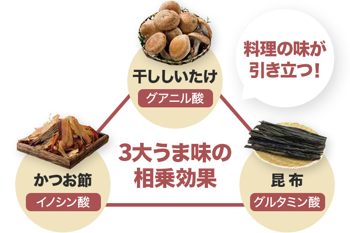 3大うま味の相乗効果で、料理の味が引き立つ!